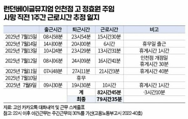 "충격적인 근무 시간 수준"...런배뮤 과로사 직원, 사망 전 스케줄표 공개 경악...'결국 노동부 착수'